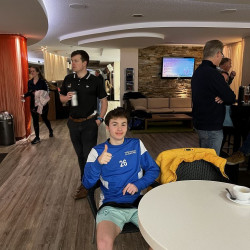 Im Endspiel wartete mit dem Chilenen Lucas Perez Carrillo, der bis dato keinen Satz abgegeben hatte, erneut ein harter Brocken. Hatte Weber den ersten Satz mit 11:7 für sich entschieden, kam es Anfang des zweiten Durchgangs zu einer Verletzungspause, da sich Carillo eine blutende Wunde am Finger zugezogen hatte. Diese vermochte der Chilene jedoch nicht vernünftig zu stillen. Folge: Beim Zwischenstand von 4:4 musste Simon Nordstadt den Satz zugunsten Webers beenden. „Ich hatte Lucas in der Pause darauf aufmerksam gemacht, dass er sich die nötige Zeit zum Stillen der Wunde nehmen soll. Da er das nicht getan hat, blieb mir leider keine andere Wahl. Das sind die Regeln“, klärte der Oberschiedsrichter auf. In der Folge war Carillo dann zu sehr mit sich selbst beschäftigt, sodass Weber auch den dritten Satz relativ ungefährdet für sich entschied. „Das war schon ärgerlich für Lucas. Ich glaube, dass ich auch sonst gewonnen hätte. Aber der Sieg war natürlich der krönende Abschluss eines tollen Turniers. Daher freue ich mich schon jetzt auf eine Wiederholung“, so Weber.