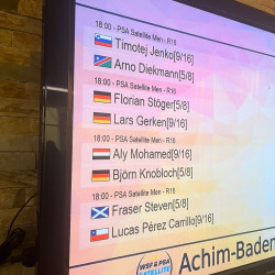 Auch wenn die Aktiven des SC Achim-Baden in den hochklassig besetzten Feldern mit Spielern aus insgesamt 13 Nationen erwartungsgemäß keine große Rolle spielten, war SC-Sportwart und Organisator Lars Gerken sehr zufrieden. „An den drei Tagen hat alles super geklappt. Daher sind wir auch extrem erleichtert. Zumal wir ja auch nicht wussten, was uns alles erwartet. Klar, es gibt immer noch ein paar Kleinigkeiten, die wir noch besser machen können. Aber wir haben jetzt ja ein Jahr Zeit für die Vorbereitung der zweiten Auflage. Die soll es nach den positiven Rückmeldungen definitiv geben“, richtete Gerken dabei auch seinen großen Dank an Anlagenbetreiber Peter Berleth. „Ohne ihn wäre ein Turnier dieser Größenordnung und der Qualität nicht möglich gewesen.“ Besonders gefreut hat sich Gerken, der tatkräftig von Björn Knobloch und Steffen Rohde unterstützt wurde, dass es lediglich zwei kurzfristige Absagen gegeben hat. Auch das Damenfeld, in dem Lokalmatadorin Aylin Gromoll einzige deutsche Teilnehmerin gewesen ist, da Claudia Müller krankheitsbedingt nicht antreten konnte, fand in seiner Nachbetrachtung nur lobende Worte. „Das war ein sehr hohes Niveau. Daher hoffe ich, dass alle Spielerinnen auch bei der nächsten Auflage wieder vertreten sind und dann nach Möglichkeit auch noch mehr Damen den Weg zu uns finden.“ Bezüglich der Kapazitäten sieht Lars Gerken noch Luft nach oben. „Da hätten noch ein paar mehr melden können. Aber für die Premiere war die Anzahl gar nicht so schlecht. Wir hatten keinen Stress und können die gesammelten Erfahrungen nun für das nächste Turnier nutzen.“